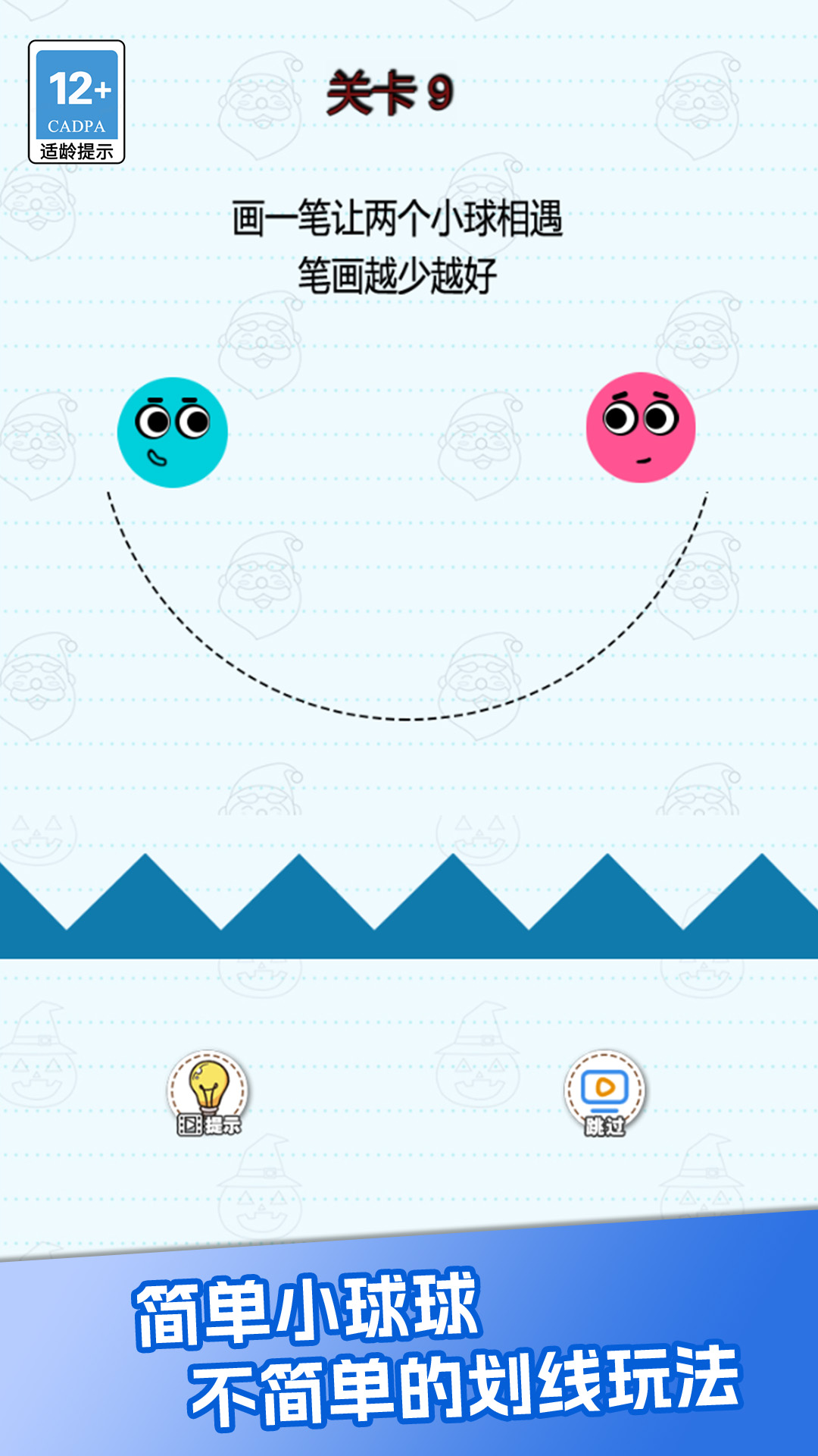 1.如下图所示,进入关卡之后玩家需要画出线条,让两个球球能够在下坠之后成功碰撞到一起即可闯关。