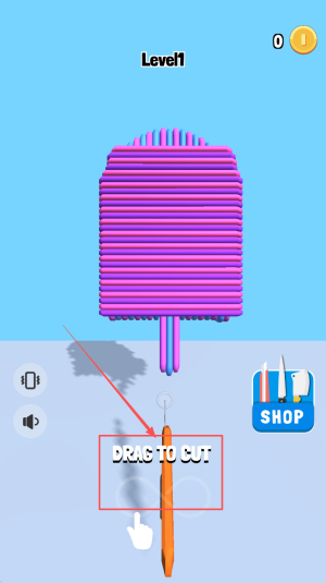1.启动游戏:打开应用,在主界面点击“DRAG TO CUT”按钮,直接进入第一关。