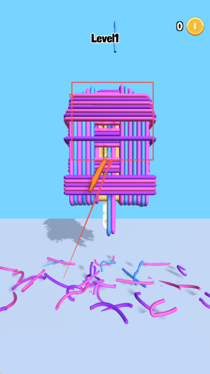3.多变的捆绑谜题:橡皮带会以不同的方式缠绕在物体上,需要玩家观察并找到高效的切割顺序。