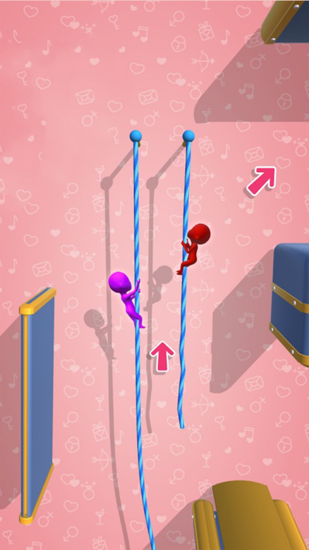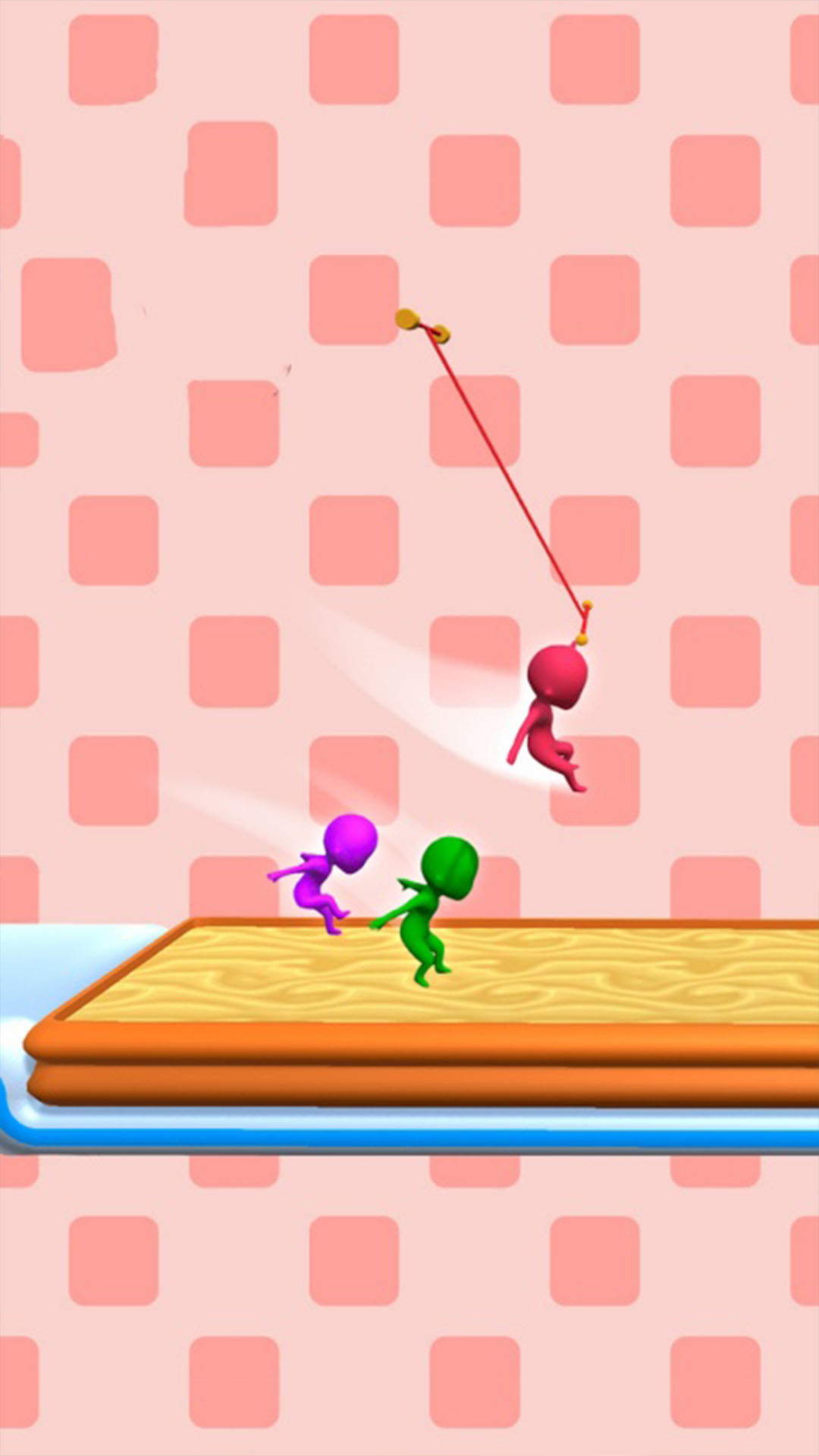 2. 赛道会以火柴人为中心自动旋转推进,你需要做的就是在恰当的时机做出正确的跳跃或下蹲动作。