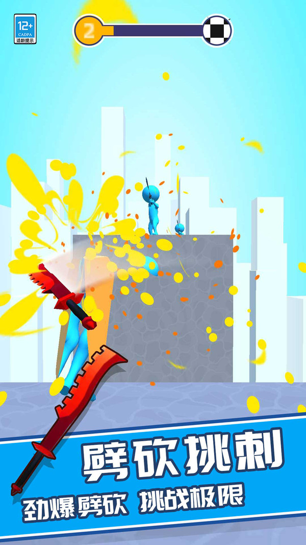 3、挥刀操作采用点劈结合,单个敌人或子弹点击挥刀即可,面对集群威胁时上滑触发大范围劈砍,高效清场。