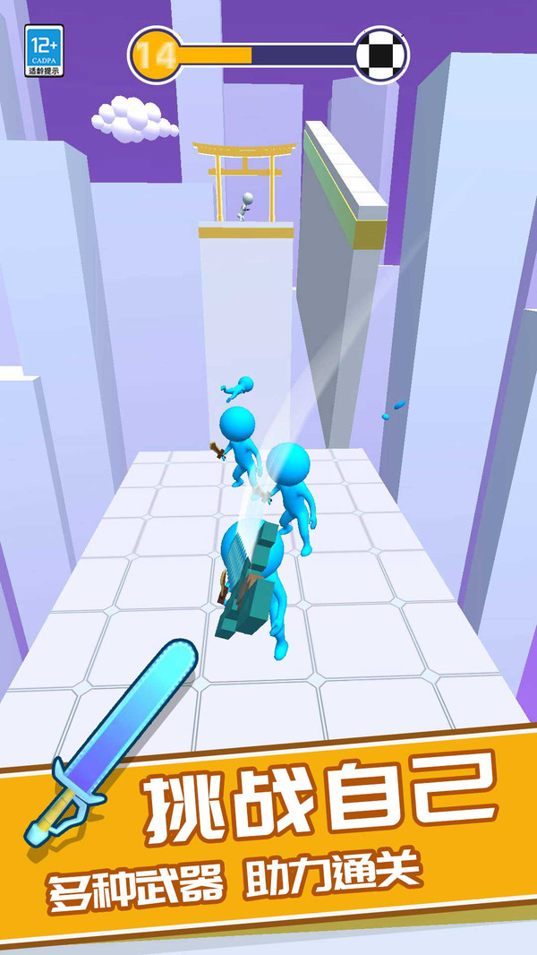 3、点击或上滑屏幕操控角色挥刀,劈开障碍物、斩杀追兵,同时格挡远程攻击,保护自身安全。