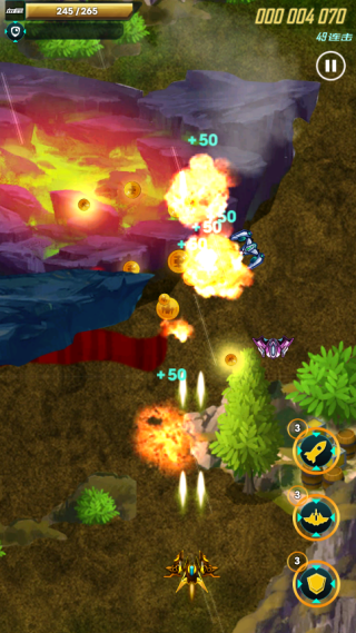 7.炫酷的美术风格,多样的战机收集的难度并不是很大,每个人都可以轻松收集到。