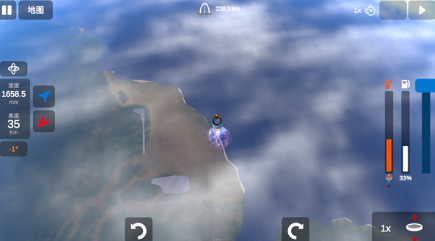 6、到达一定高度后还需再次点击1x,模拟火箭发射舱体掉落;