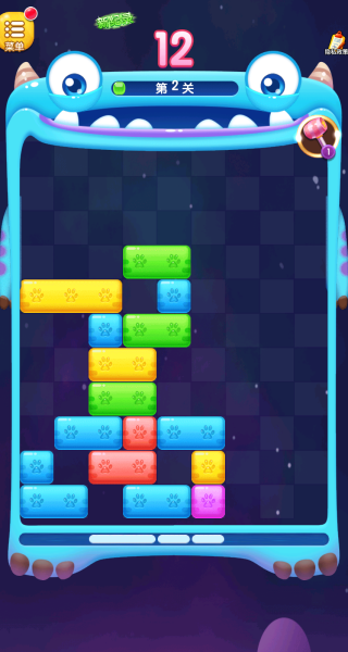 1、滑动屏幕移动方块,将相同类型或满足条件的方块排列成完整一行,即可触发消除效果。
