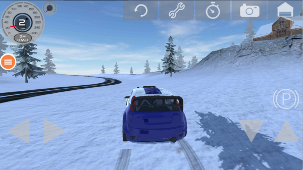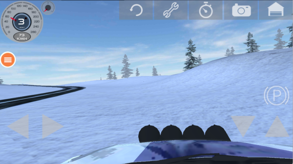 2、在雪地道路中驾驶汽车,玩家要快速启动汽车,自由选择自己的驾驶路线。