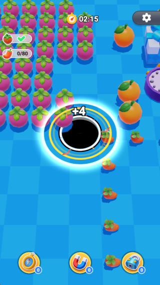 2、左右滑动屏幕控制黑洞移动方向,持续吞噬物体让黑洞逐步扩大,解锁吞噬更大尺寸目标的能力。
