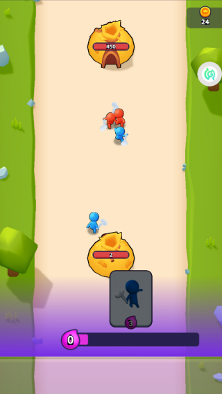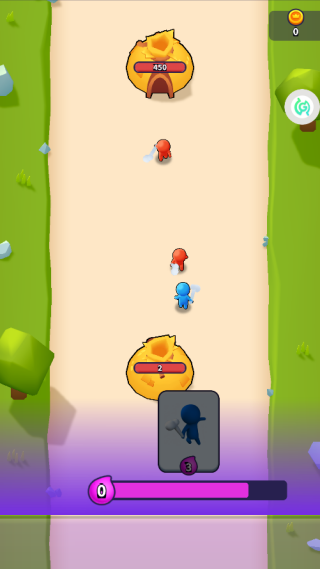 4、利用自动增长的能量招募士兵出击,派遣小队击败敌人、击破对方堡垒,解锁更多兵种与进化阶段。