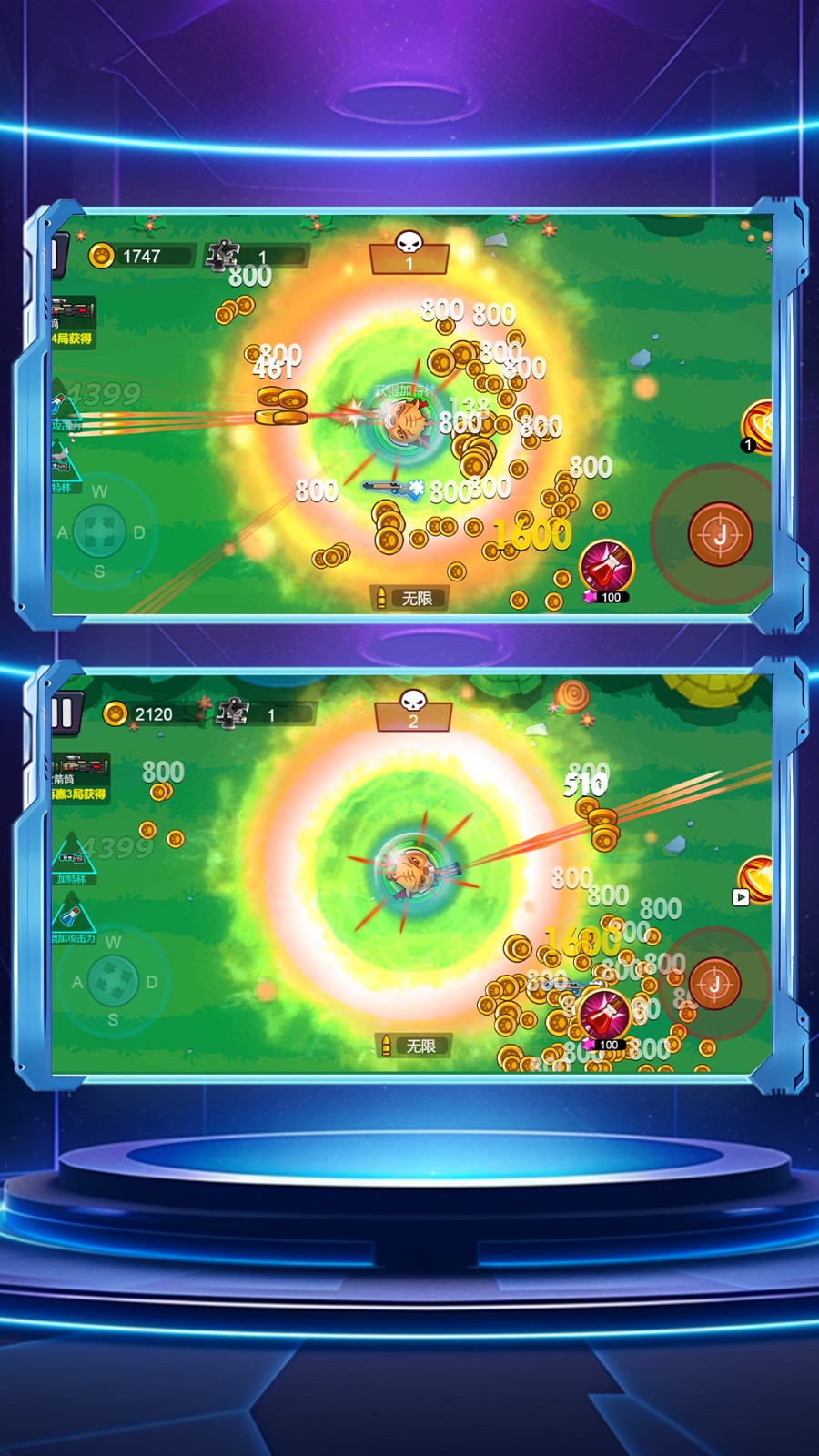 2、通过闯关收获的资源强化自身火力配置,升级射击武器的威力与射程,解锁更强的火力输出方式。