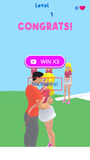 4.赢得奖励:当画面弹出“CONGRATS! WIN X3”,点击领取三倍奖励,进军下一关!