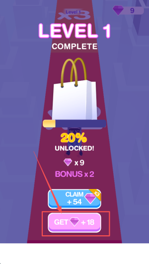 4.胜利收获:当界面显示“LEVEL COMPLETE”时,点击“CLAIM”领取奖励,并自信迈入下一关。