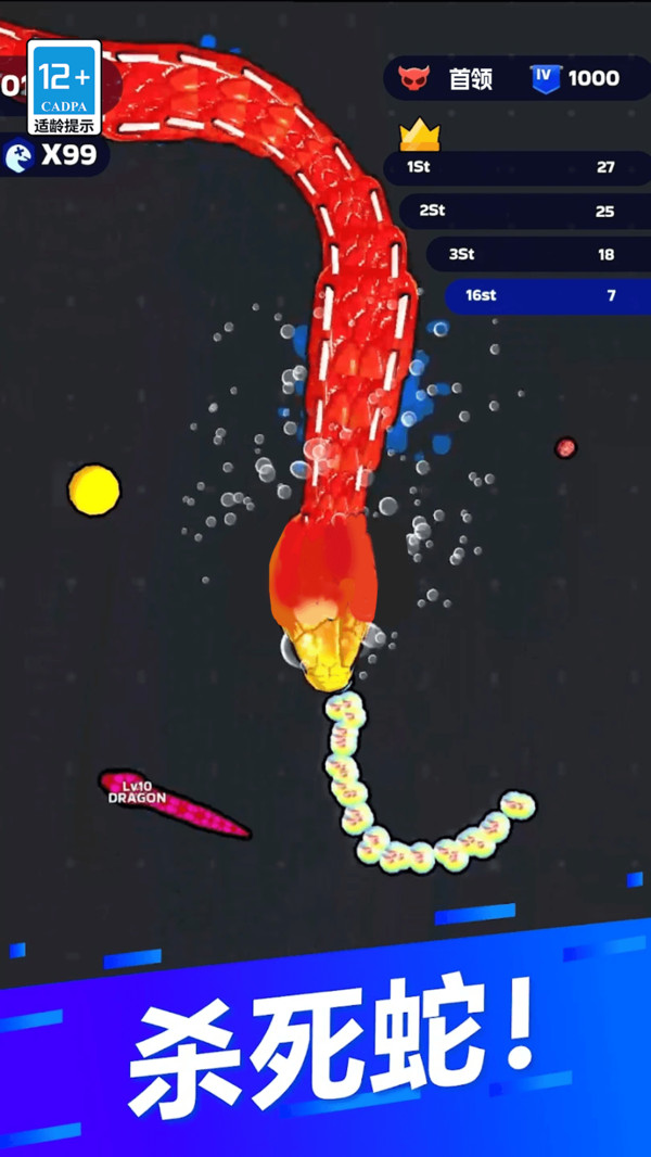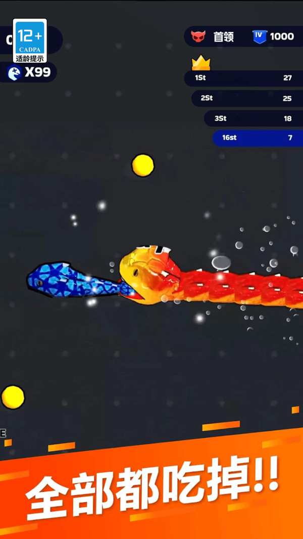 4、超大地图支持百条蛇蛇同场竞技,夺旗场等多种模式,玩法丰富不单调;