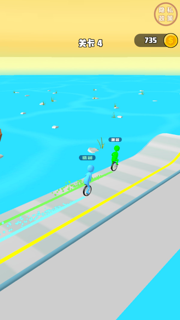3、灵活规避关卡中的各类障碍物,保持骑行节奏,成功抵达终点即可获得奖励,解锁下一关。