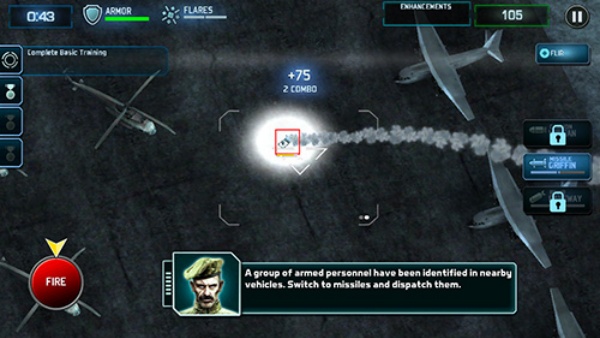 操作并不复杂,玩家只需要在挑战中滑动屏幕来回的移动自己的视角并发现地图中的目标就能发起攻击,有时候甚至还需要你切换机枪或是导弹消灭不同的敌人,随着玩家对无人机的升级,你能使用的武器和无人机的性能也会产生不同的变化。