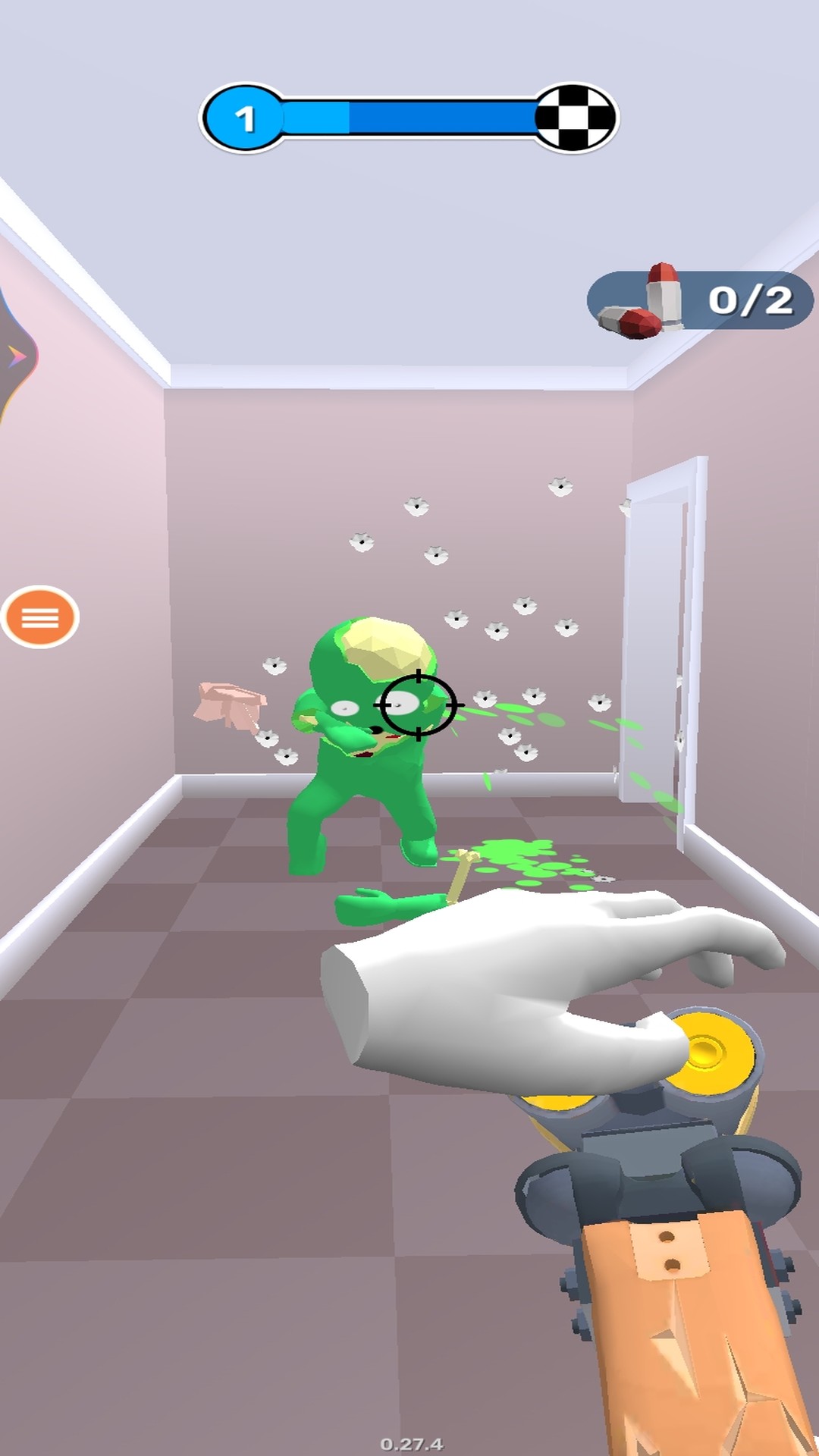 1.如下图所示,在第一个关卡中我们只拥有一把散弹枪作为武器。点击屏幕任意位置即可进入房间开始战斗。