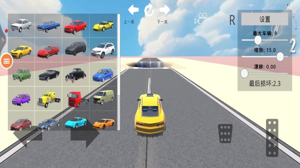 2、完成碰撞与竞速挑战即可解锁更多赛车,不同车型拥有差异化的驾驶手感与碰撞性能,丰富游玩的选择空间。