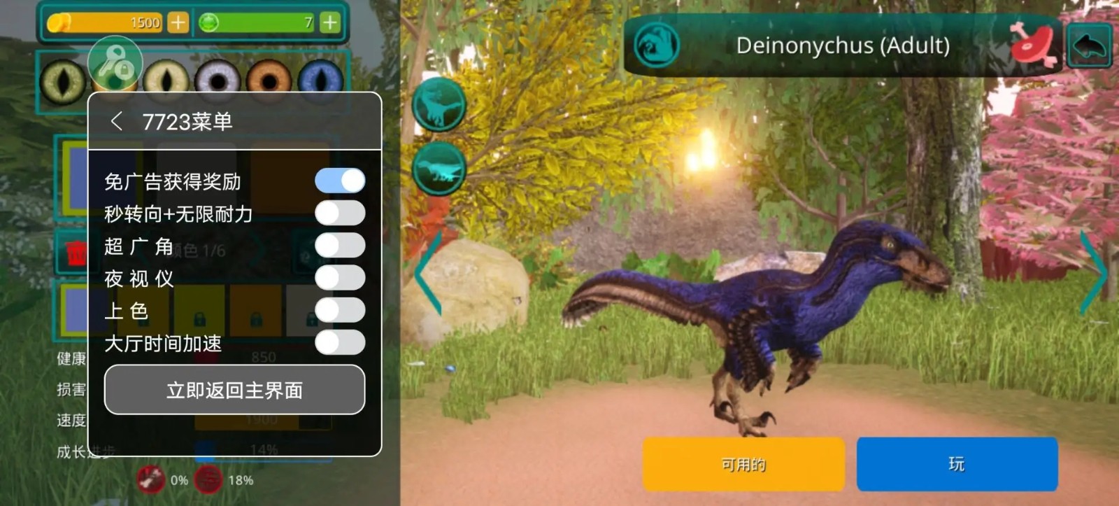2、游戏让玩家体验侏罗纪恐龙世界和恐龙生活,你必须选择你的恐龙,例如霸王龙或迅猛龙,并培育你的恐龙,并与他一起进入一个相当残酷的侏罗纪时代。 开始你的生存,寻找食物和水,完成任务并一路发展。