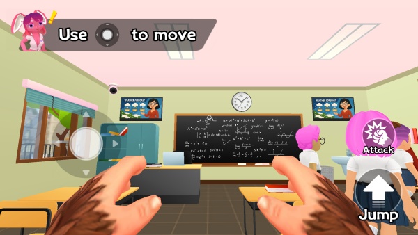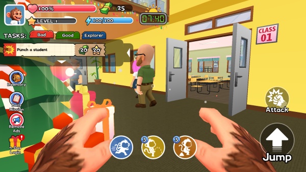 2、长按互动键拾取黑板擦、香蕉等物品,短按进行投掷或使用,组合道具触发隐藏恶作剧效果。