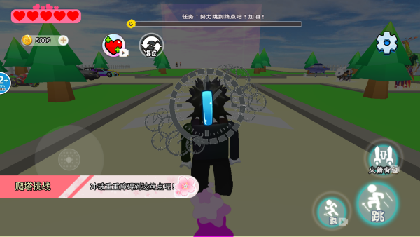 2、前往商店解锁角色装扮与道具,如火箭背包等助力道具,为不同赛道挑战做好装备准备。