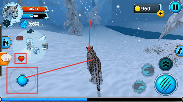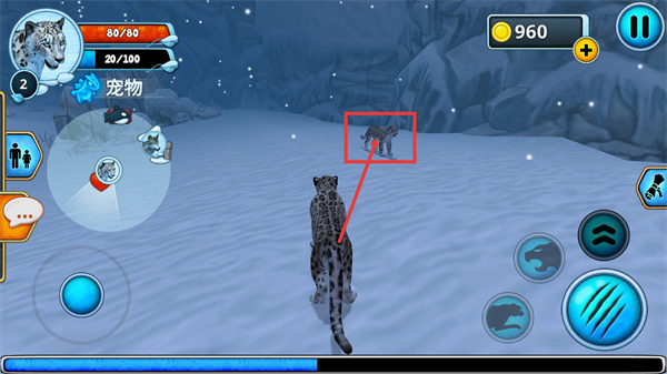 2.操作真实便捷:支持虚拟摇杆移动、一键奔跑与攻击,并可切换雪豹第一视角与鸟瞰视角,兼顾真实感与操作自由度。