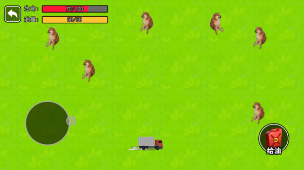 2、自由驾驶卡车穿越所有区域,在驾驶过程中要躲避所有小狗,碰到小狗会扣除生命值。