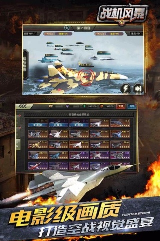 2.【电影级画面 打造空战视觉盛宴】战机风暴的电影级画面质感极大加强了战斗临场感,战机技能特效华丽炫酷,让玩家在游戏同时可以观赏到一场场紧张刺激的空战视觉盛宴。