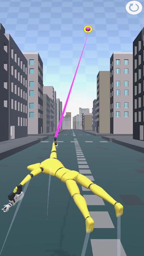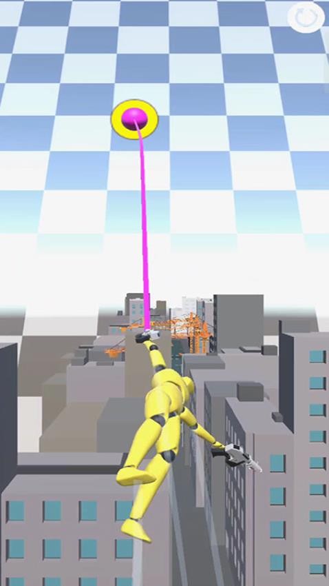 1、进入游戏后,你可以看到一个黄色的木偶人正利用抓钩在飞檐走壁。