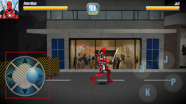 2.利用左下角方向轮盘操控【RobotNinja】移动,灵活走位应对敌人【Jeff】,为接下来的激烈格斗创造有利条件。