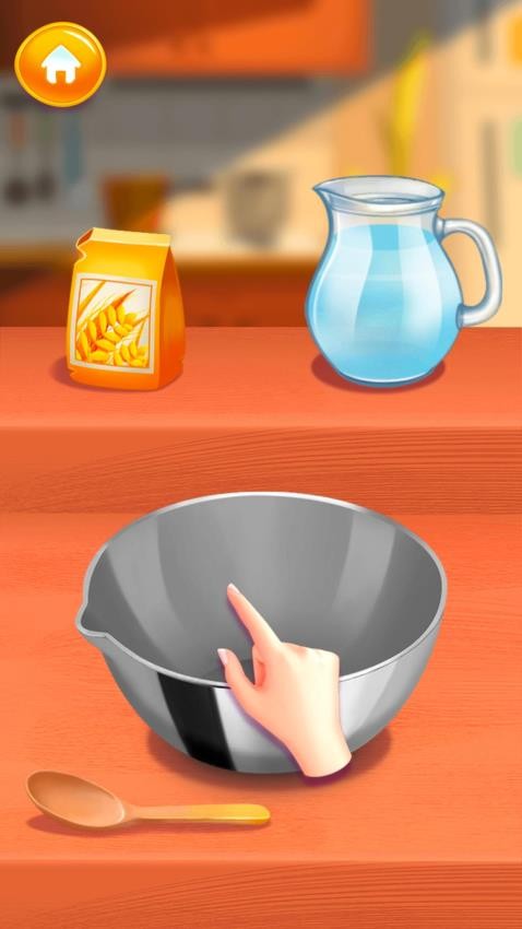 3、每一个步骤过程需要用到的厨房工具不同,根据提示来进行食品制作。