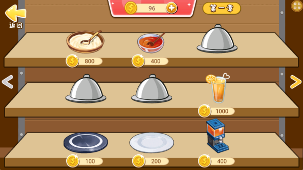 4、通过挑战获得的金币,你可以逐步解锁更多的餐厅用品以及食物。