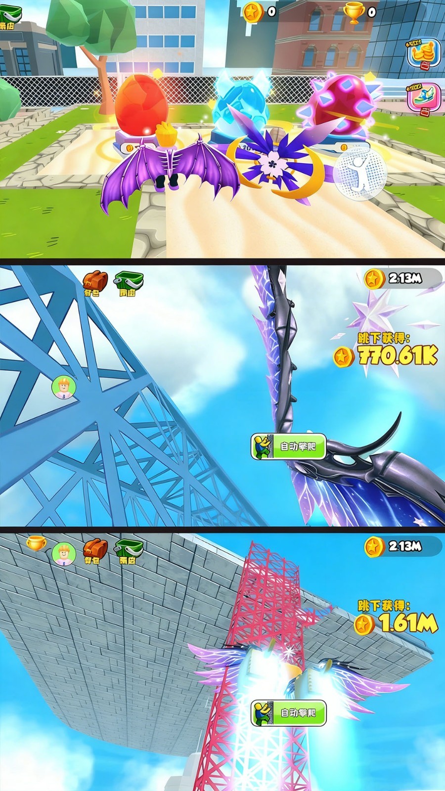 4、从高塔上直接跳跃,根据角色的跳跃高度会获得不同金币奖励,快速收获更多金币。