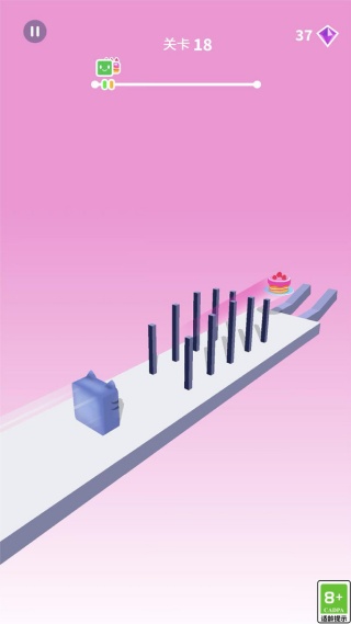 3、随着游戏推进,关卡难度逐渐提升,障碍数量增多、布局更复杂,需要玩家更精准地控制角色变形与移动节奏。