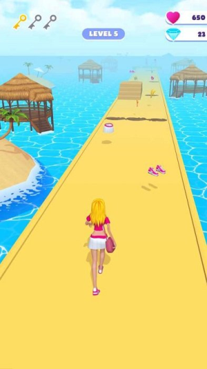 2.积极收集资源:在奔跑过程中,主动收集赛道上的金币、口红、饰品等各类道具,它们会即时改变角色造型并积累升级资源。