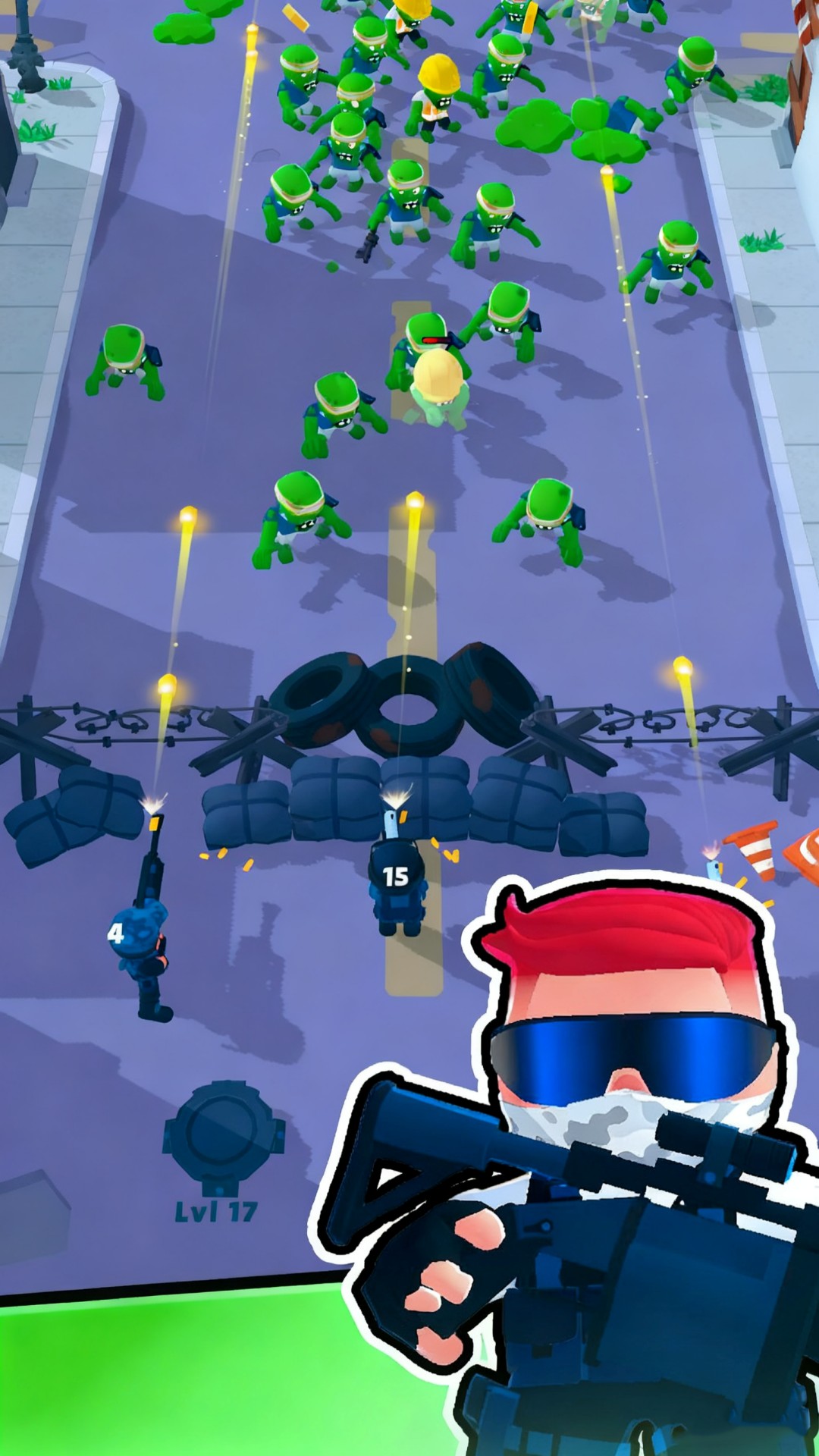 3、自由组合不同属性士兵形成防御体系,搭配高伤害与高射速兵种,兼顾单体击杀与群体清剿,应对多样僵尸进攻场景。