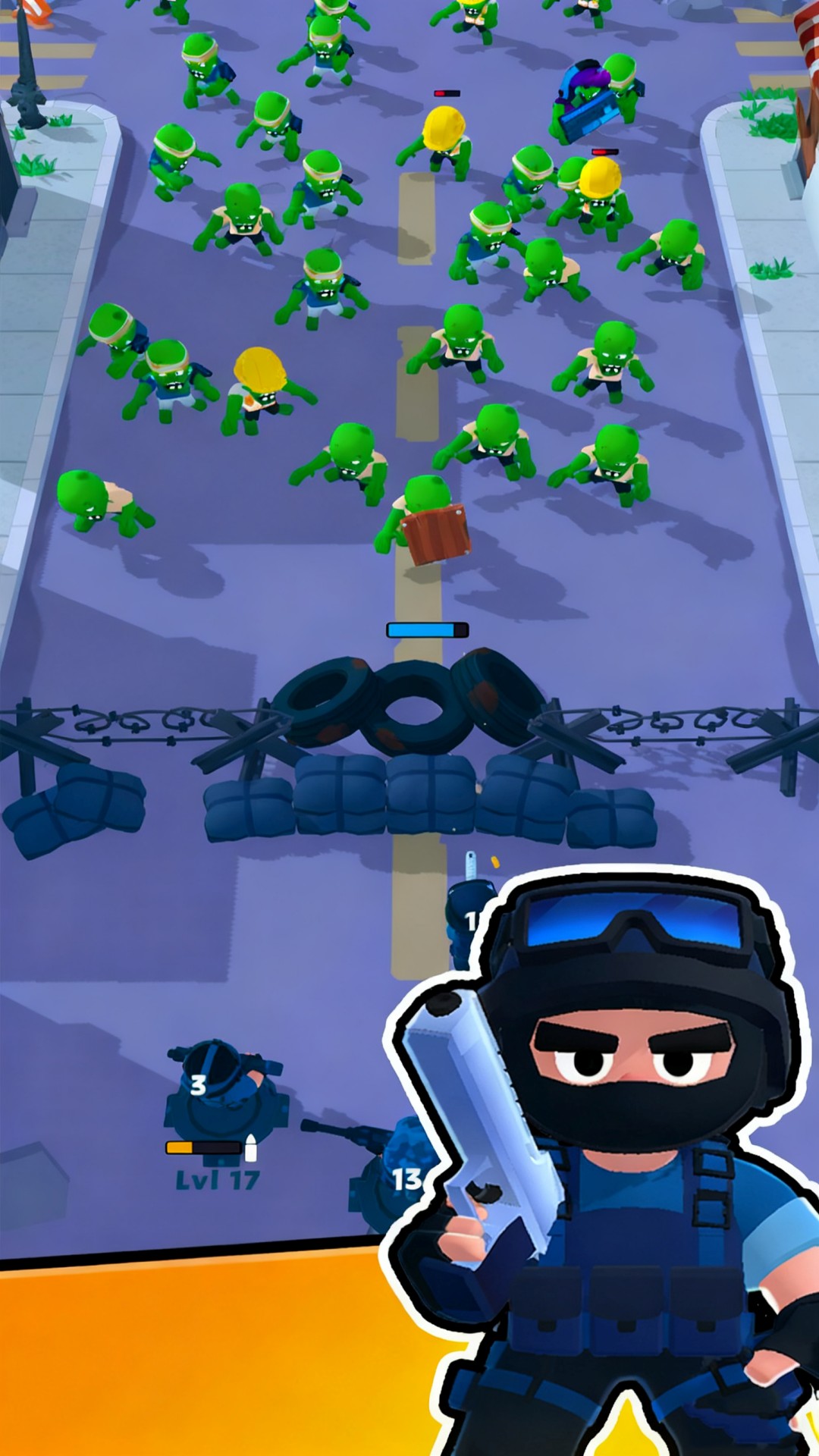 僵尸生存战场是一款非常有趣的策略游戏,在游戏中玩家需要在尸潮进攻中守护基地,在合适的位置放置士兵,快速射击消灭场景中的僵尸,不能让僵尸突破自己的防线,快速提升士兵的等级,还能装备全新的武器,强化基地的防守力量。