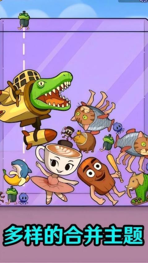 可以在游戏中合成忍者、青蛙、大象、仙人掌、鲨鱼、香蕉、轮胎等怪物