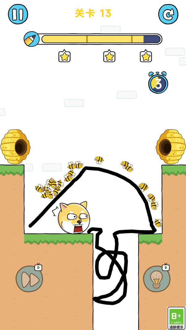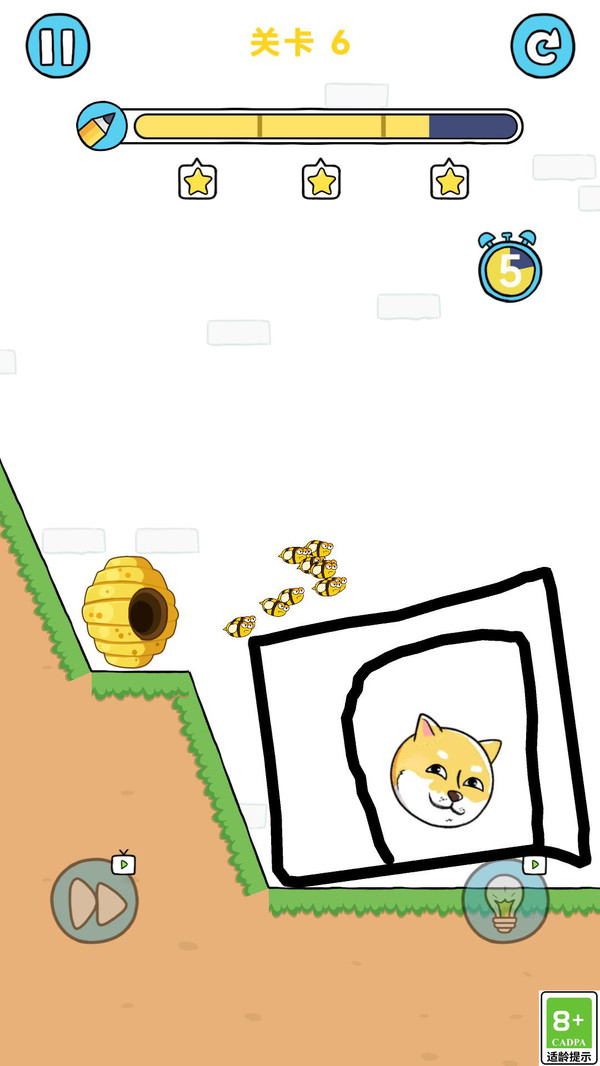 战五渣快闪这是一款休闲闯关类游戏,你需要不断的闯关挑战哦,你需要画线闯关哦,游戏里你需要保护好狗头哦,避开所有的蜜蜂哦,游戏里利用道具闯关更加轻松哦,战五渣快闪游戏里多个关卡可以选择哦,越往后关卡的难度越高哦,喜欢的快来下载吧!
