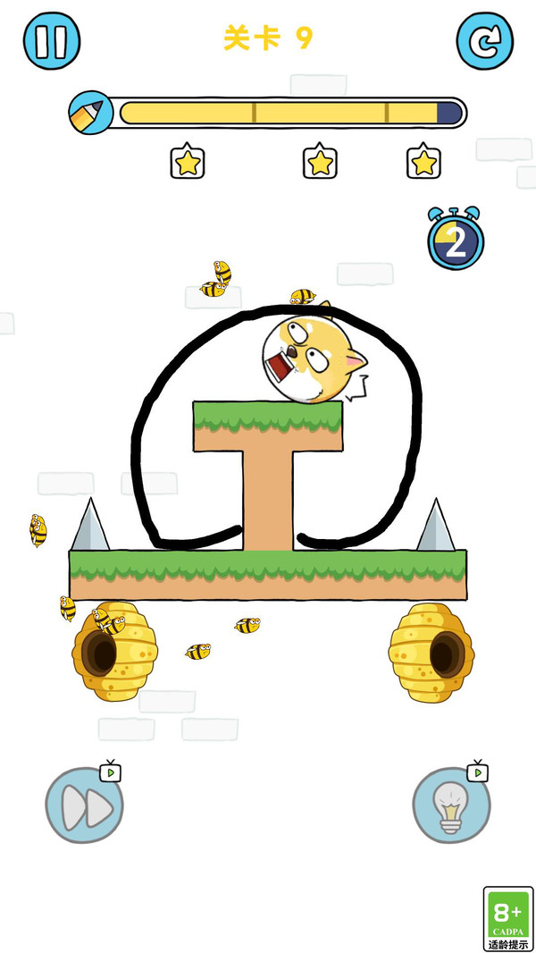 3. 每关有墨水或线条长度限制,需要玩家用最经济有效的方案达成目标,有时需要一笔完成。