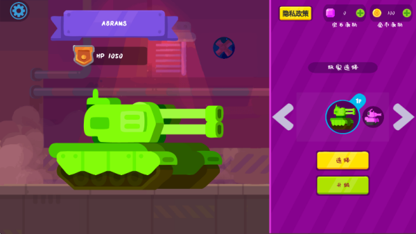 1.一款以2D卡通风格呈现的坦克射击竞技游戏,画面简洁明快,角色设计充满趣味性。