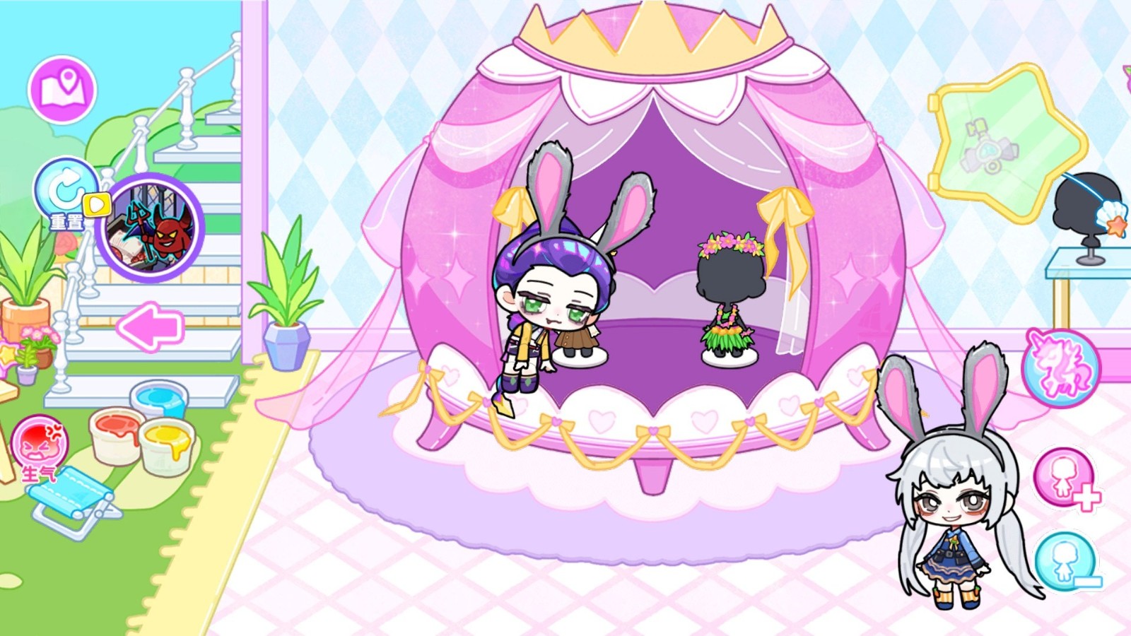 1、进入游戏后熟悉角色拖动、场景切换、道具添加的基础操作,通过初始引导快速掌握核心玩法。
