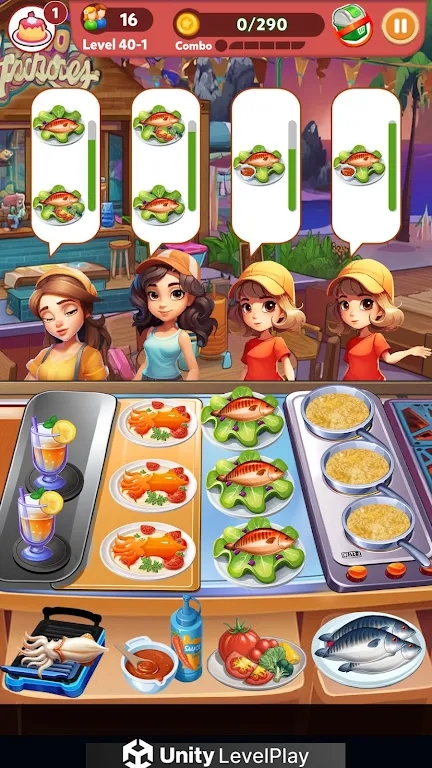 1、每一关都是独一无二的烹饪体验,您需要在高压的晚餐时段完成顾客的订单。