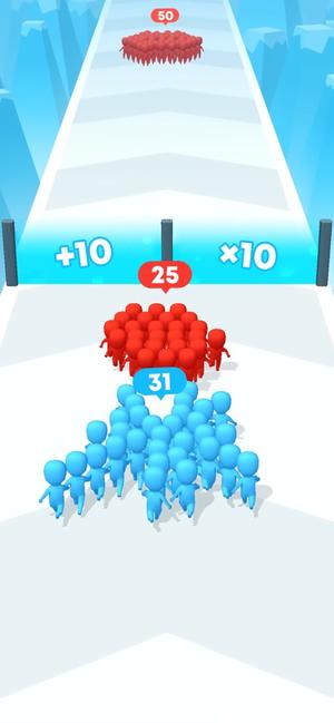 2. 你的队伍人数会随着你撞击路上不同的数学运算门而实时增加或减少,这是游戏的核心机制。