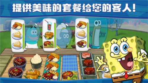 3、蟹老板、派大星、章鱼哥等经典角色也会在游戏中你一起互动,享受美食之旅。