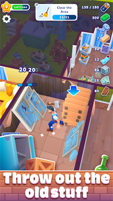2、真实模拟的装修流程,需完成清理垃圾、拆除旧墙、铺设地板等基础工程,逐步解锁新区域。