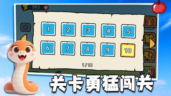 3、个性皮肤:通过关卡奖励可获得多种贪吃蛇皮肤,每种皮肤不仅外观独特,部分还带有轻微特效或表情变化。