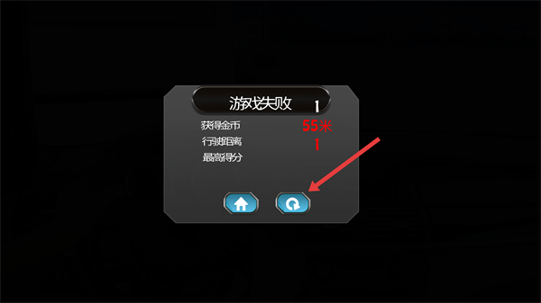 4、要是游戏没通过,就点击重置按钮重新开启这一关卡,争取让行驶距离更长、得分更高。