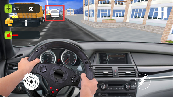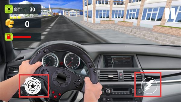 2、驾驶过程中,可借助【刹车】与【加速】按钮来控制车辆速度,与此同时,通过操控方向盘来调整行驶的方向。