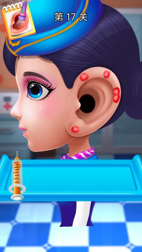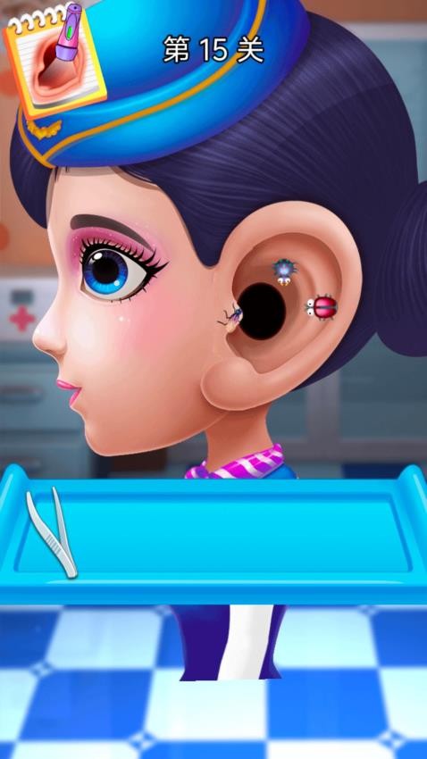 1、下载安装游戏之后你便可开启挑战,点击进入到护理耳朵的关卡中,见到不一样的病状和情况。