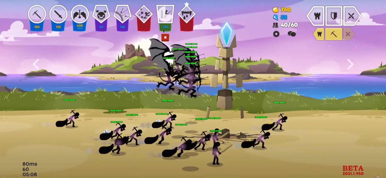 有足够的矿石,就能点击攻击类的火柴人,派遣它们去摧毁敌人的基地。