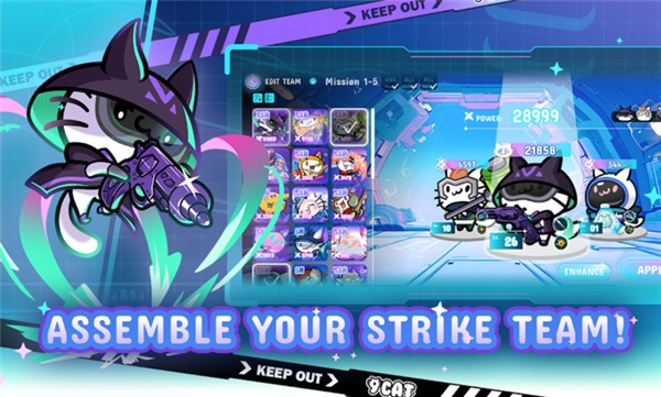 2、玩家可招募并组建由9只特色猫咪组成的特攻队,每只猫咪均拥有独特的外观。